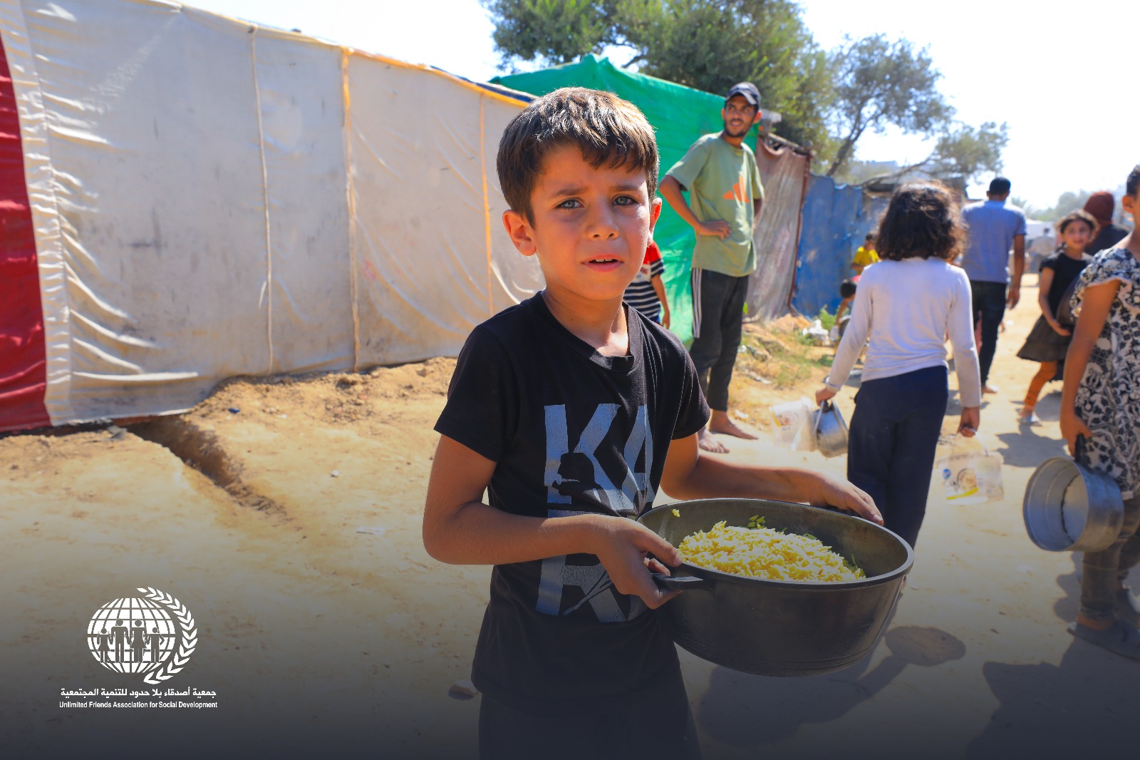 🍲 جمعية أصدقاء بلا حدود تقدم وجبات طعام ساخنة للأسر النازحة"